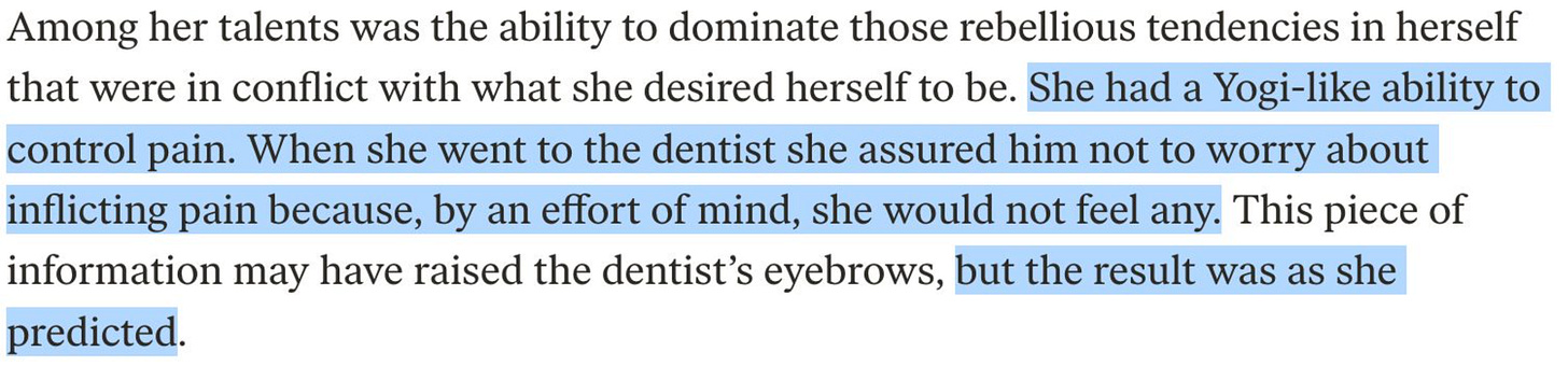 A Feeling for the Organism, Fox Keller. This a biography of the Barbara McClintock, badass yogi / Nobel prize winning discoverer of jumping genes. Her discovery deeply challenged the entrenched dogma that DNA → proteins was a one way street, and she was shunned by much of the biology community for decades. McClintock, among other things could reach a deep meditative absorption while running and significantly reduce pain.